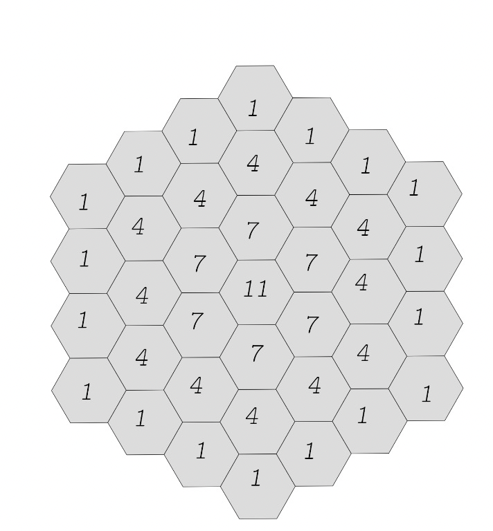 Each hexagon stores a natural number in :