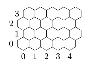 A square grid lets you get away with matrix intuition for a long time. A hex grid does not. Neighbor relations depend on row parity, and the specification numbers rows from bottom to top, while most standard hex-grid references assume top-based coordinates. Trying to reason in a matrix-like way immediately produces questions that do not exist on square grids: if I move to the upper-right neighbor, do I stay in the same column or shift? Does that answer change when the row is even?